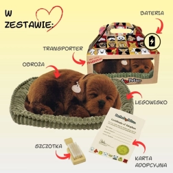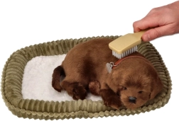 Der weiche schokoladenfarbene Labrador wirkt außerordentlich realistisch – geschlossene Augen, weiches Fell, ein Halsband mit Anhänger und ein bequemes Körbchen vermitteln den Eindruck eines echten schlafenden Welpen. Das Spielzeug sorgt für eine ruhige Atmosphäre zu Hause und im Kinderzimmer und erfreut kleine wie große Hundefreunde.
