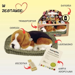 Ein niedliches und realistisches Beagle-Welpe, das sanft atmet wie ein echtes Hündchen. Ideal als beruhigende Dekoration und plüschiger Begleiter für Kinder ab 3 Jahren. Dank der detailreichen Ausführung, dem Halsband mit Marke und dem weichen Körbchen wirkt es sehr authentisch und bringt Ruhe und Wohlbefinden in jeden Haushalt.