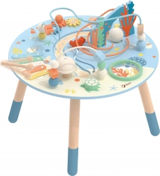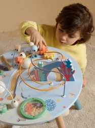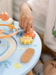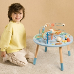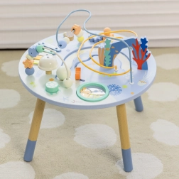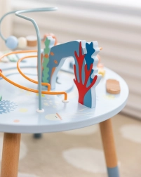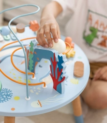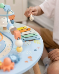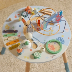 Der Holztisch Aktivität Meeresleben ist ein großartiger Einstieg in die Welt der Formen und Farben. Sicher für die Kleinsten, aus hochwertigem Holz und mit ungiftigen Farben bemalt. Kinder werden zum Spielen im Stehen ermutigt, was ihre Koordination und ihr Gleichgewicht unterstützt. Bildungsvorteile dieses Tisches sind immens, sei es für die Verbesserung der Feinmotorik oder die Entwicklung musikalischer Fähigkeiten.