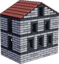 Zum Set gehören dreieckige Träger, Bogenfenster und 32 Dachteile – die ideale Ergänzung, um jedes Bauwerk zu vollenden.
