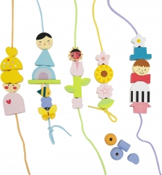 Kreatives Holzfädelset mit 73 Teilen fördert Feinmotorik, Geduld und Fantasie. Kinder können bunte Perlen auffädeln, Formen und Farben kombinieren und den Figuren die passenden Outfits anziehen oder Blumen Stiele zusammensetzen. Sicheres Holz und ungiftige Farben sorgen für unbeschwertes Spielen ab 3 Jahren.