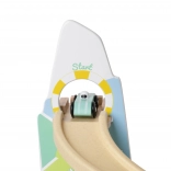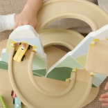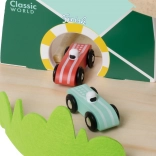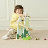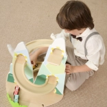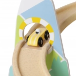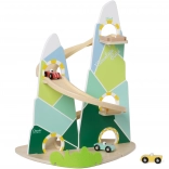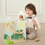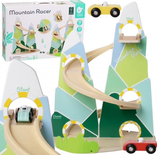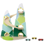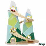 Diese originelle Berg-Rennbahn in der Form zweier Gipfel ist aus hochwertigem Holz gefertigt und mit ungiftigen Farben in angenehmen Pastelltönen lackiert. Kinder ab 18 Monaten können die 3 beiliegenden Autos die kurvigen Bahnen hinunterfahren lassen, die Fahrt beobachten, Farben lernen und die Reaktionsfähigkeit trainieren.