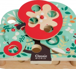 Mit dem „Specht-Vogel“ mit magnetischem Schnabel fangen Kinder bunte Perlen–Würmchen, die in den Öffnungen des Baumes versteckt sind. Das Spiel ist intuitiv, sicher und motiviert zum wiederholten Ausprobieren, wodurch Geduld und Genauigkeit ganz natürlich gefördert werden.