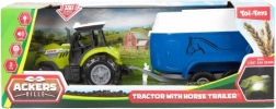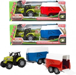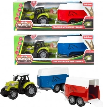 Entdecken Sie den Spielspaß auf dem Bauernhof mit einem realistischen Set aus grünem Traktor und Pferdeanhänger. Das Spielzeug bietet Licht- und Soundeffekte, die die Atmosphäre eines echten Hofes verstärken, und dank Freilauf bewegt es sich leicht auf unterschiedlichen Böden.