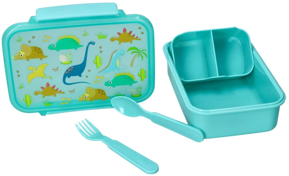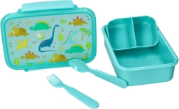 Stylische und funktionale Snackbox mit Dinosauriermotiv, die jede Mahlzeit unterwegs angenehmer macht. Das integrierte Besteck (Gabel und Löffel) ist immer griffbereit, sodass Kinder und Erwachsene überall bequem essen können. Die Box ist leicht zu reinigen und für den täglichen Gebrauch geeignet.