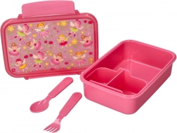 Praktische Brotzeitbox mit Feen-Motiv, ideal für Schule, Ausflüge und Freizeit. Inklusive Besteck – Gabel und Löffel. Die Box ist gefriergeeignet und kann ohne Deckel in der Mikrowelle erhitzt werden (max. 100 °C). Dank der kompakten Maße passt sie leicht in die Schultasche.