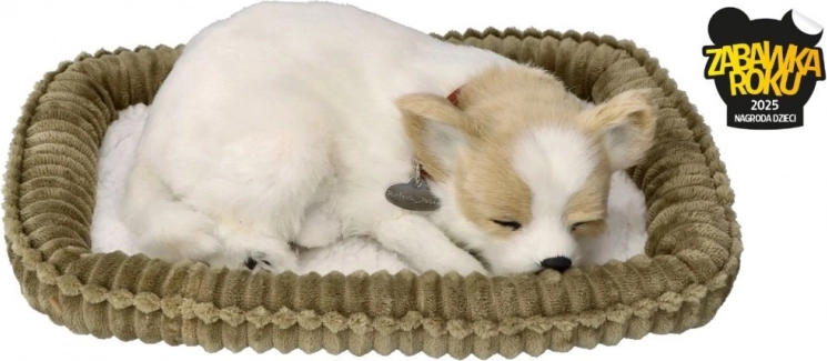 Niedliches interaktives Chihuahua-Welpen, das im Schlaf sanft schnarcht und Kinder zum Kuscheln einlädt. Ideales Spielzeug für Kinder ab 3 Jahren, fördert Fantasie und Fürsorge. Weiche Plüschverarbeitung, beruhigende Geräusche und einfache Bedienung für den Alltagsspielspaß.