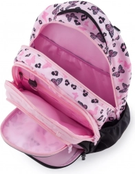 An den Seiten befinden sich zwei größere Taschen. Im Inneren verbirgt sich eine breite Palette von Taschen – von großen bis zu kleineren, so dass alles schnell und einfach gefunden werden kann. Ein praktischer Halter für Schlüssel oder Schulchip sorgt dafür, dass notwendige Kleinigkeiten immer griffbereit sind.