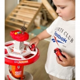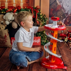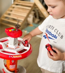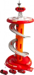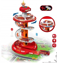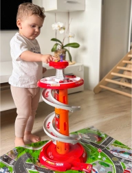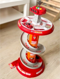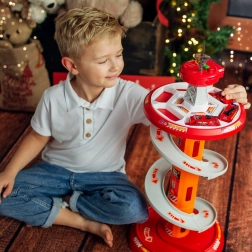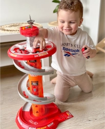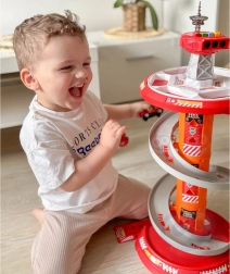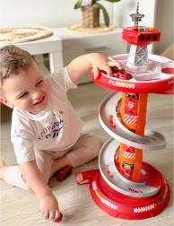 Bringen Sie Spaß ins Spiel mit dem mehrstöckigen Feuerwehr-Parkplatz von WOOPIE! Der stabile Turm mit Spiralrampe ermöglicht eine gleichmäßige und schnelle Abfahrt der Autos vom Gipfel bis zur Basis. Kinder trainieren Feinmotorik und Fantasie, wenn sie über die markierte Einsatzstrecke gemäß den Verkehrszeichen zum Einsatz ausrücken.