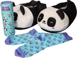 Gönnen Sie sich gemütliche Wärme und Weichheit mit den Panda-Plüschpantoffeln Pandastic. Ihre sanfte Oberfläche und die flauschige Füllung sorgen für angenehmen Tragekomfort, während das verspielte Design mit Pandagesicht Kinder wie Erwachsene begeistert. Dank der ausreichend breiten Sohle sind die Pantoffeln beim Bewegen im Haushalt stabil und bequem.