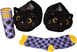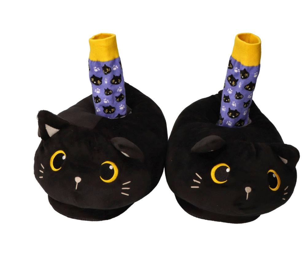 Gestickte gelbe Augen, Öhrchen und Schnurrhaare verleihen den Hausschuhen einen charakteristischen Look, der Kinder wie Erwachsene erfreut.