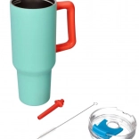Der Thermobecher ist auf einfache Pflege ausgelegt – spülmaschinengeeignet bei Temperaturen bis 50 °C. Vor der ersten Verwendung empfehlen wir eine gründliche Reinigung. Dank des großen Fassungsvermögens von 1200 ml ideal für Wasser, Eiskaffee oder Limonaden.