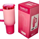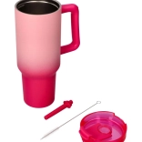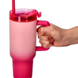 Entdecken Sie den Komfort eines großen Thermobechers mit Strohhalm in elegantem Rosa. Der breite Griff liegt hervorragend in der Hand, der Deckel minimiert Verschütten und der Strohhalm erleichtert das Trinken auch beim Gehen. Ideal für Wasser, Eiskaffee oder Limonaden.