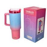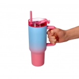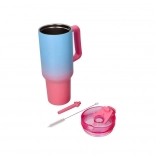 Entdecken Sie den Komfort des großen Thermobechers mit Strohhalm, der ein großes Volumen von 1200 ml mit einer leichten und praktischen Ausführung kombiniert. Dank des Deckels mit Trinkhalm trinken Sie bequem auch unterwegs, während der bequeme Henkel das Tragen erleichtert. Das trendige blau‑rosa Ombre-Design verleiht jedem Tag das gewisse Etwas.