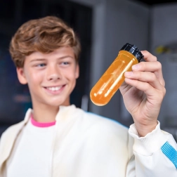 Füllen Sie die Röhre mit Wasser, schließen Sie sie und schütteln Sie, bis es sprudelt, und enthüllen Sie Ihren geheimnisvollen Fund.