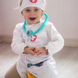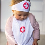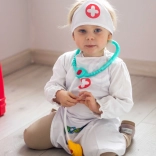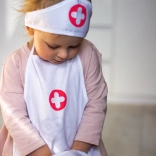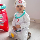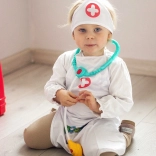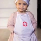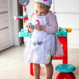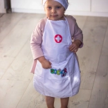Leichte Schürze mit praktischen Taschen, die Stethoskop und weiteres Kinderequipment fasst – so ist das Doktorspiel immer griffbereit.