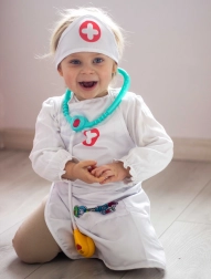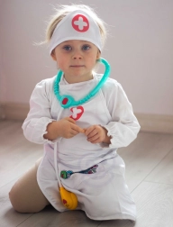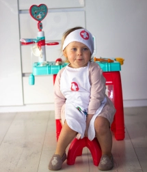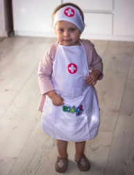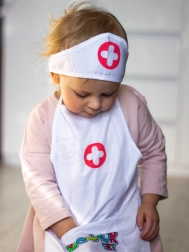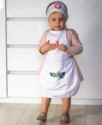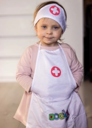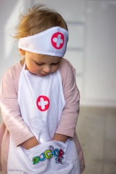 Leichte Schürze mit praktischen Taschen, die Stethoskop und weiteres Kinderequipment fasst – so ist das Doktorspiel immer griffbereit.