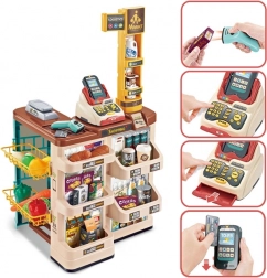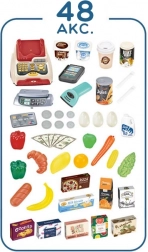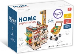 Zum Lieferumfang gehören außerdem ein Einkaufswagen/Korb für das Spiel zu zweit, Papiergeld, eine Zahlungskarte und verschiedene Lebensmittel (Obst, Gemüse, Getränke, Milchprodukte u. a.). Das ästhetische Design passt in jedes Interieur und die bunte Geschenkverpackung sorgt bei jeder Gelegenheit für Freude.