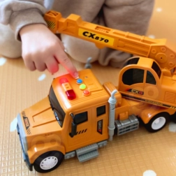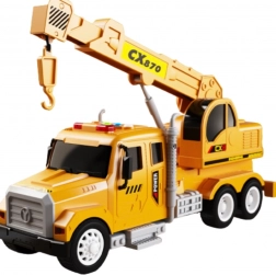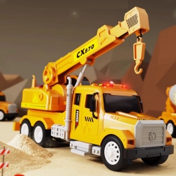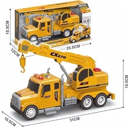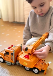 Der WOOPIE Kranwagen 1:14 ist das ideale Spielzeug für kleine Baumeister. Vier farbige Tasten auf dem Dach der Kabine aktivieren Lichter und verschiedene Geräusche (Motorstart, Hupen, Fahrgeräusche), während der Anschub-Freilauf dafür sorgt, dass das Fahrzeug nach einem Schubs alleine weiterfährt.