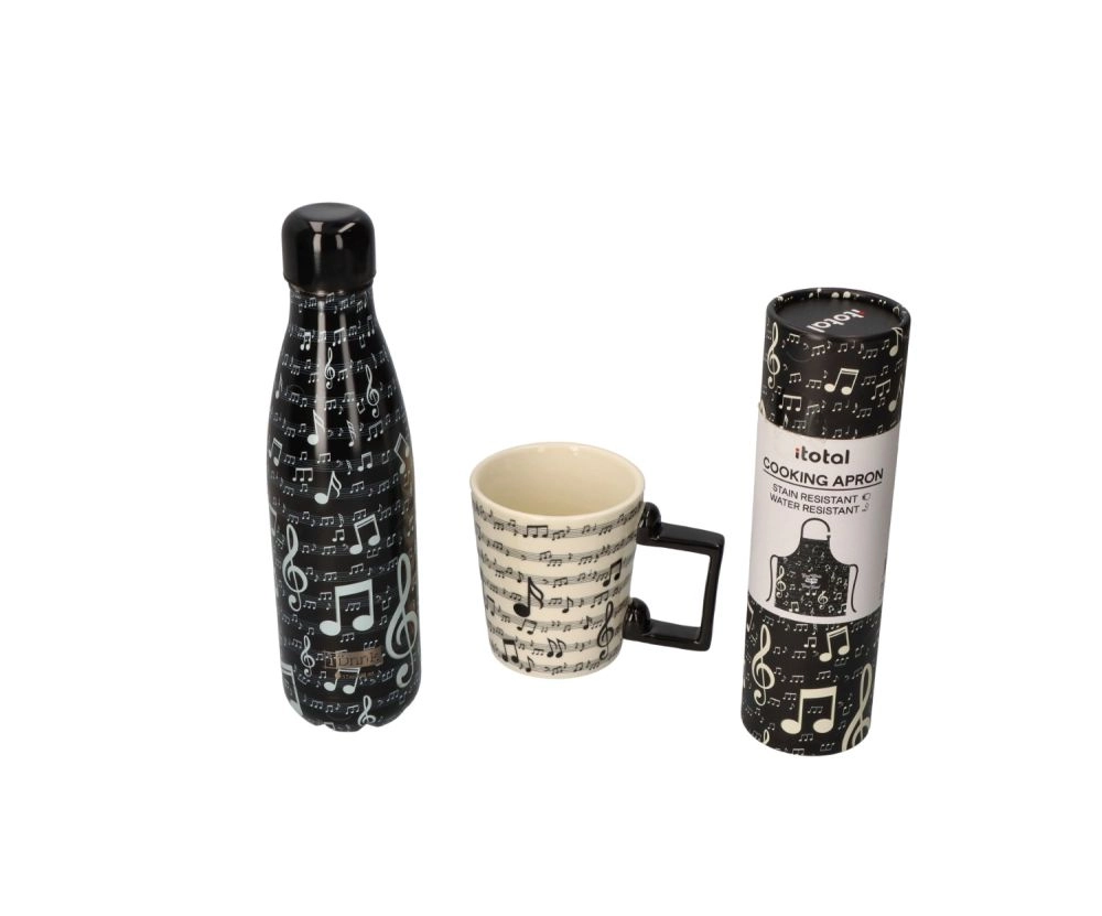 Diese schwarze Thermoflasche mit dem Musikmotiv „Music“ besticht durch eine schlichte, elegante Ästhetik mit 3D-Effekt. Dank der kompakten Abmessungen passt sie leicht in den Rucksack oder in den Flaschenhalter. Sie ist ideal für warme und kalte Getränke, die sie länger auf der gewünschten Temperatur hält.