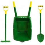 Dieses hochwertige Set in den ikonischen JOHN DEERE Farben ist ideal für Kinder, die gern im Garten helfen. Die robuste Schubkarre mit bequemem Griff sowie die leichte Schaufel und Harke sind auf Kinderhände zugeschnitten und sorgen für sichere und spaßige Nutzung beim Transport von Erde, Sand, Laub oder Gras.