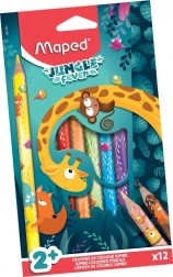 Das Set mit 12 robusten Buntstiften Maped Jungle Fever Jumbo ist speziell für Kinder ab 2 Jahren konzipiert. Diese Buntstifte zeichnen sich durch einen dreieckigen Schaft aus, der den Kindern hilft, sie leicht zu greifen und den richtigen Halt eines Schreibwerkzeugs zu entwickeln. Die weiche und langlebige Mine sorgt für ein kräftiges Farbergebnis auf dem Papier und ist bruchsicher.