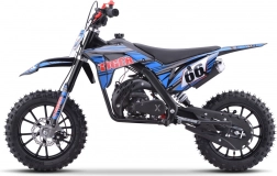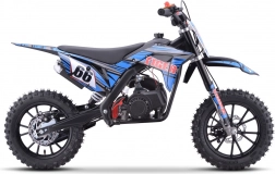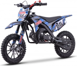 Leichtes und wendiges Mini-Dirt-Bike mit 49-ccm-Zweitaktmotor für junge Fahrer und Einsteiger. Robuster Stahlrahmen, Scheibenbremsen vorne und hinten sowie 10"-Geländereifen sorgen für Sicherheit im Terrain. Geschwindigkeit bis zu 40 km/h, Handstart und Sicherheits-Killschalter mit Abreißleine für unbeschwerten Offroad-Spaß.