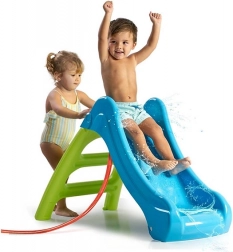 Durch Anschließen eines Gartenschlauchs entsteht eine erfrischende Wasserrutsche – die ideale Sommeraktivität für Kinder ab 12 Monaten.