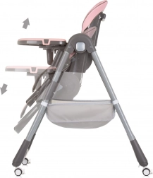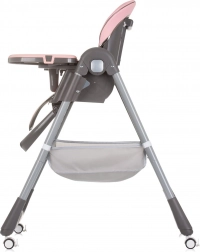 Das praktische doppelte Tablett mit abnehmbarer oberer Schale erleichtert das Servieren und Reinigen. Für Sicherheit sorgen gepolsterte 5-Punkt-Gurte und der T-Bügel am Basistablett. Dank der 4 Räder lässt sich der Stuhl leicht in der Wohnung bewegen, während der Aufbewahrungskorb Spielzeug und Fütterungszubehör aufnimmt. Das kompakte Faltmaß spart Platz zu Hause und auf Reisen.