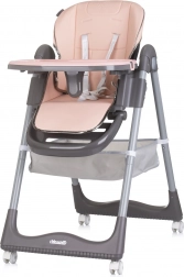 5-Punkt-Sicherheitsgurte mit weichen Schulterpolstern, stabile Konstruktion und 4 Räder für leichtes Verschieben. Der Spielbügel mit Spielzeug unterhält das Kind während des Wartens auf das Essen.