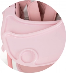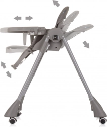 Eltern schätzen das doppelte Tablett – die obere, abnehmbare Schale für schnelles Reinigen und das untere mit Schutz-T-Bügel für maximale Sicherheit. Den Hochstuhl passen Sie mit 8 Höhenstufen leicht an den Esstisch an. Vier Rollen sorgen für Mobilität im Haushalt und nach dem Essen klappen Sie ihn einfach auf kompakte Größe zusammen.