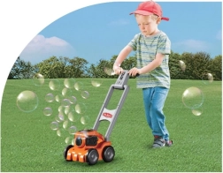 Das Spielzeug verbindet den Spaß am Mähen mit dem Vergnügen, Seifenblasen zu erzeugen. Einfach den Tank anschließen, einschalten und die farbigen Blasen genießen.