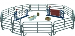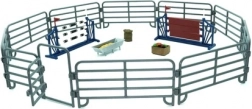 Verbindbare Zaunpaneele und farbige Sprungelemente schaffen einen sicheren Bereich für Training und Pflege der Pferde. Ideal, um unterschiedliche Spielszenen nachzustellen.