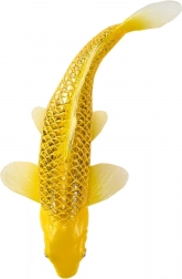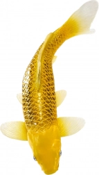 Jedes Stück ist sorgfältig von Hand bemalt, um das realistische Erscheinungsbild, die Schuppenstruktur und die charakteristische Färbung des Koi Kin Matsuba hervorzuheben.