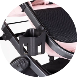 Der Kinderwagen ist mit Zubehör ausgestattet, einschließlich einer Tasche für Zubehör, einem Flaschenhalter und einem Beinschutz.