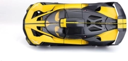 Die-cast-Metallkarosserie, realistische Proportionen und die kontrastreiche gelb-schwarze Lackierung unterstreichen die aggressiven aerodynamischen Linien, durch die das Modell in jeder Sammlung heraussticht.