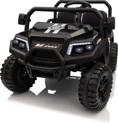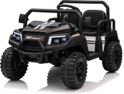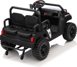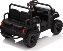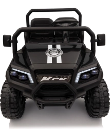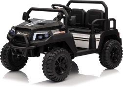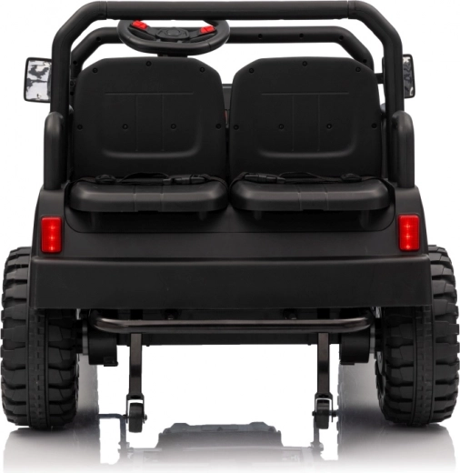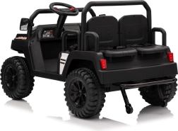 Das viersitzige elektrische Buggy Champion in elegantem Schwarz ist für gemeinsame Abenteuer gemacht. Dank des Antriebs 2×200 W und der 24 V / 9 Ah Batterie bietet es genügend Leistung auch abseits befestigter Wege. Große EVA-Räder 29×12 cm und Vorder- und Hinterradfederung sorgen für eine bequeme und stabile Fahrt.