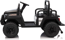 Eltern schätzen die 2,4-GHz-Fernbedienung mit drei Geschwindigkeiten und der Stopp-Sicherheitstaste, die die Fahrt der Kinder unter Kontrolle hält. Kinder genießen das sanfte Anfahren, die LED-Beleuchtung vorne und hinten mit Schalter sowie die umfangreiche Ausstattung des Audiopanels: FM-Radio, MP3, Bluetooth, USB, Hupe und Soundeffekte am Lenkrad.