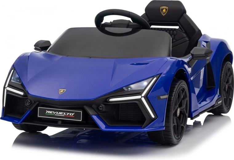 Das Auto ist dem echten LAMBORGHINI Revuelto nachempfunden: scharfe Linien, aerodynamische Formen, authentisches Logo und Scherentüren zum Öffnen. LED‑Scheinwerfer und Rückleuchten verstärken das realistische Erlebnis.