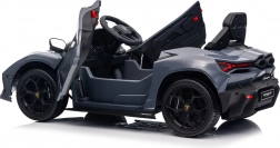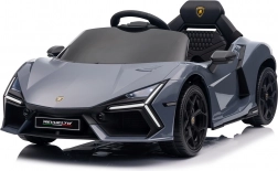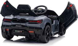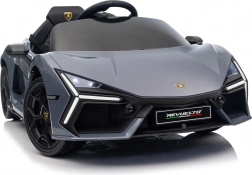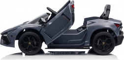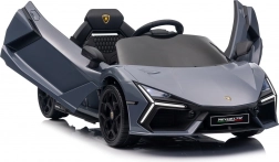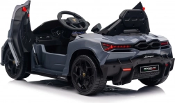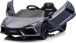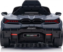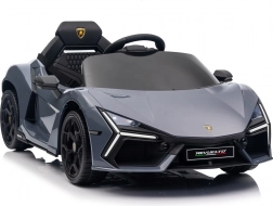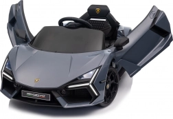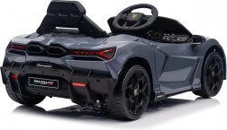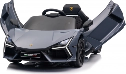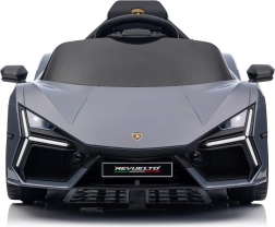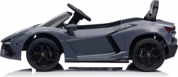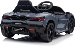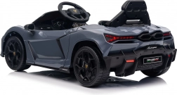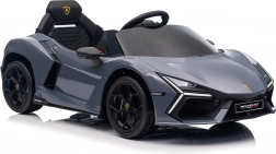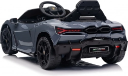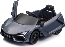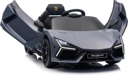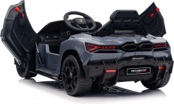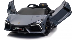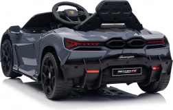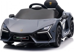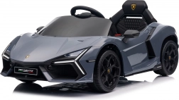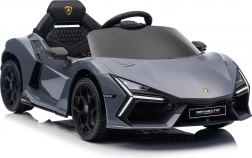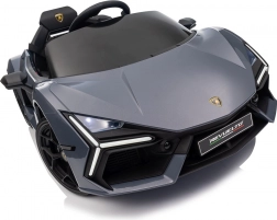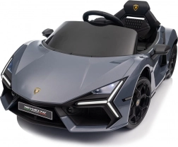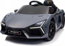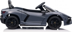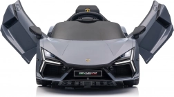 Stilvolles elektrisches Kinderauto LAMBORGHINI Revuelto in elegantem Grau für ein realistisches Fahrerlebnis. Leistungsstarker Antrieb 2×45 W, Batterie 12 V 9 Ah, weiche EVA-Räder, aufklappbare Scherentüren und komfortabler Sitz aus Ökoleder mit Gurten. Für die Sicherheit der Eltern steht eine 2,4‑GHz‑Fernsteuerung mit Stop-Taste zur Verfügung. LED-Beleuchtung und umfangreiche Audio-Ausstattung mit Bluetooth/MP3/FM/USB sind ebenfalls an Bord.