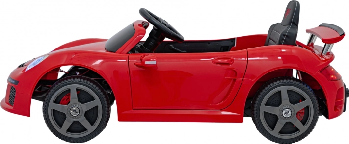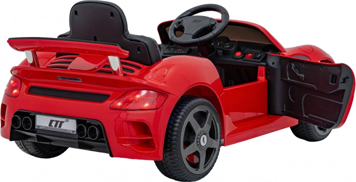 Elektrisches Kinderauto RUF CTR3, 2×35 W, 12 V 9 Ah, EVA-Räder, 2,4-GHz-Fernbedienung mit Stop, LED-Lichter, Sitz aus Kunstleder, Bluetooth/USB/MP3. Rot.