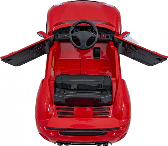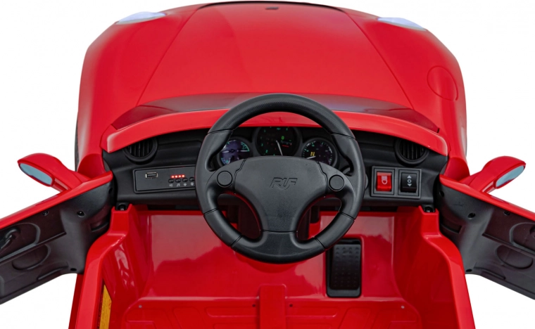 Das stylische Kinderauto RUF CTR3 in Rot bietet starke Doppelmotoren 2×35 W, einen 12 V 9 Ah Akku, EVA-Schaumräder und eine 2,4-GHz-Fernsteuerung mit Not-Stopp-Taste. Mit dabei sind LED-Lichter, ein weicher Sitz aus Kunstleder mit Sicherheitsgurten sowie ein Audio-Panel mit MP3/USB/Bluetooth für noch mehr Spaß.