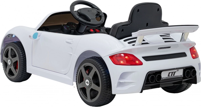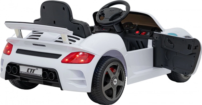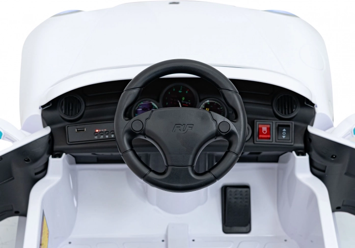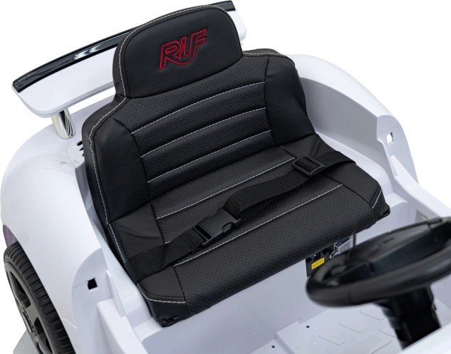 Das elektrische Kinderauto RUF CTR3 in elegantem Weiß vereint ansprechendes Design und durchdachte Sicherheitsmerkmale. Dank sanftem Anfahren und Vorwärts-/Rückwärtsfahrt ist die Bedienung natürlich und komfortabel. Weiche EVA-Räder zusammen mit hinteren Stoßdämpfern sorgen für eine angenehme Fahrt drinnen und draußen.