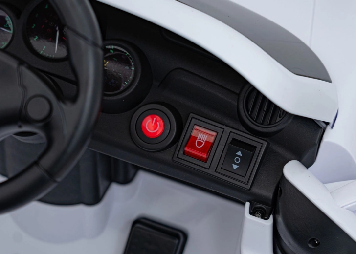 Das Multimedia-Panel mit MP3, USB und Bluetooth bringt Lieblingslieder direkt ins Cockpit. Am Lenkrad befinden sich Tasten für Sounds und Hupe, ein Batteriestatus-Indikator ist ebenfalls vorhanden. Ein realistisches Erlebnis vervollständigen öffnende Türen, sportliche Karosseriedetails und LED-Beleuchtung mit Schalter.