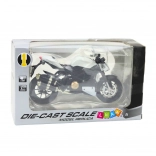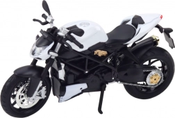 Entdecken Sie ein hochwertiges Sammlermodell, das Kinder wie auch erwachsene Zweiradfans begeistert. Der Metallkörper, sorgfältig ausgearbeitete Details und der vom Rennsport inspirierte Look verleihen dem Modell authentischen Charakter. Licht- und Soundeffekte mit 3× AG13-Batterien (im Lieferumfang) steigern den Spiel- und Ausstellungsgenuss.