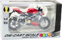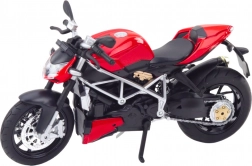 Dieses rote Sportmotorrad im Maßstab 1:12 besticht durch präzise Details und eine robuste Verarbeitung. Dank Metallkarosserie und Kunststoffakzenten wirkt es realistisch und macht sich hervorragend im Regal, auf dem Schreibtisch oder in der Vitrine. Integrierte Licht- und Soundeffekte, betrieben mit AG13-Batterien, verstärken das Gefühl einer echten Fahrt.