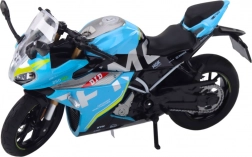 Dieses blaue Sportmotorrad im Maßstab 1:12 überzeugt durch präzise Verarbeitung und eine robuste Metallkonstruktion. Realistische Proportionen, detailgetreue Ausführung und hochwertiger Druck machen es sowohl zu einem tollen Vitrinenstück als auch zu einem attraktiven Spielzeug. Integrierte Licht- und Soundeffekte unterstreichen das Gefühl einer echten Fahrt.