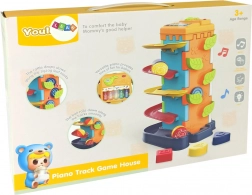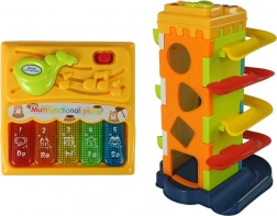 Dieses smarte Spielzeug motiviert Kinder zu aktivem Spiel und zur Entwicklung ihrer Fähigkeiten. Werfen Sie die Bälle in die obere Öffnung und verfolgen Sie ihren Weg Etage für Etage nach unten. An der Seitenwand finden Kinder Sortieröffnungen für verschiedene Formen und auf der anderen Seite ein Mini-Keyboard für erste musikalische Experimente. Alles besteht aus sicherem, zertifiziertem Kunststoff mit glatten, weich abgerundeten Kanten.