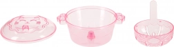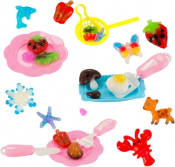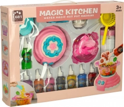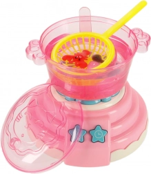 Lieferumfang: Das Set enthält 12 Fläschchen Gel in verschiedenen Farben, 24 Formen, einen Becher mit Kalziumlaktat, 4 Teller, 4 Tabletts, 2 Siebe, 2 Zangen, 1 Becher mit Deckel für interaktive Spiele und mehr.