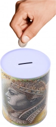 Dank des kompakten Formats von 16 × 12 cm passt sie auf Schreibtisch, Regal oder ins Kinderzimmer. Ausgestattet mit einem praktischen Schlitz für Münzen und Banknoten dient sie als stilvolle Dekoration und cleverer Sparhelfer.